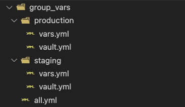 可以在與 staging、production 資料夾同一層的地方建立 all.yml 檔案,用來放一些不分環境的變數。